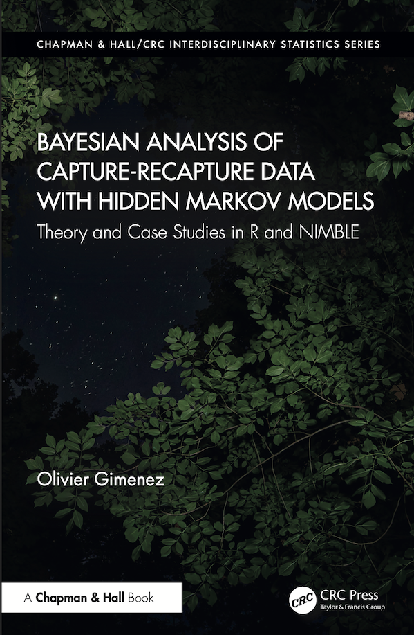 Gimenez, O. 2026. Bayesian analysis of capture-recapture data with hidden Markov models: Theory and case studies in R and NIMBLE. Chapman & Hall/CRC Interdisciplinary Statistics series.